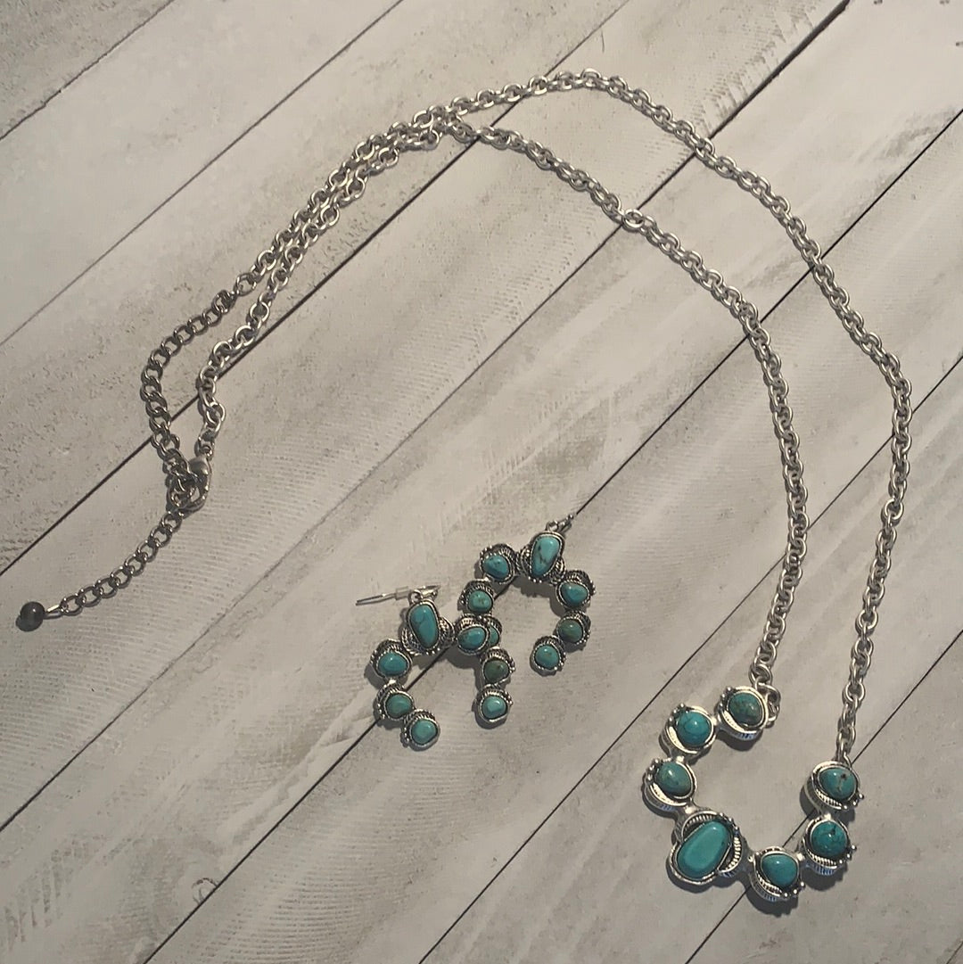 This natural stone squash is the perfect longer necklace. It has a 2” extension to adjust the length! There’s even earrings to match!
