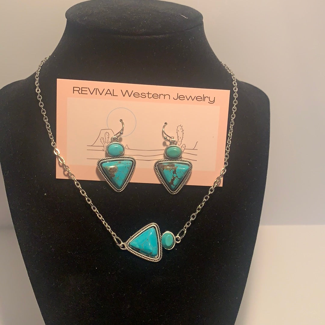 This turquoise necklace has two gorgeous stones that the different shapes compliments each other! The necklace is a 16 inch chain that hangs at the perfect length.